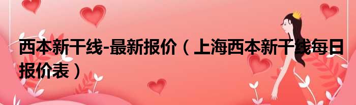 导读 大家好,今天小六子来为大家解答以下的问题,关于西本新干线-最新报价,上海西本新干线每日报价表这个很多人还不知道,现在让我们一起来看看