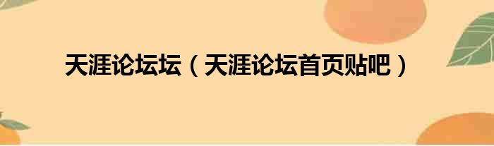 大家好,今天小六子来为大家解答以下的问题,关于天涯论坛坛,天涯论坛首页贴吧这个很多人还不知道,现在让我们一起来看看吧!