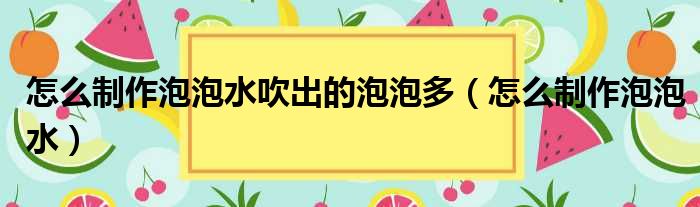 怎么制作泡泡水吹出的泡泡多(怎么制作泡泡水)