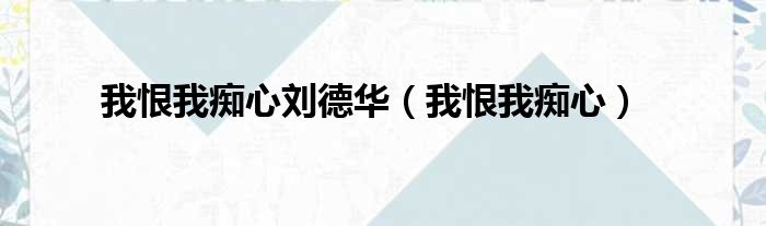 大家好,今天小六子来为大家解答以下的问题,关于我恨我痴心刘德华,我恨我痴心这个很多人还不知道,现在让我们一起来看看吧!