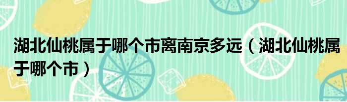 导读 大家好,今天小六子来为大家解答以下的问题,关于湖北仙桃属于哪个市离南京多远,湖北仙桃属于哪个市这个很多人还不知道,现在让我们一起来