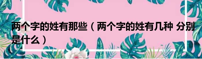 两个字的姓有那些(两个字的姓有几种 分别是什么)