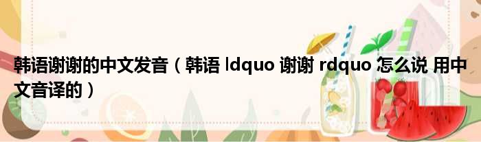 韩语谢谢的中文发音(韩语 ldquo 谢谢 rdquo 怎么说 用中文音译的)