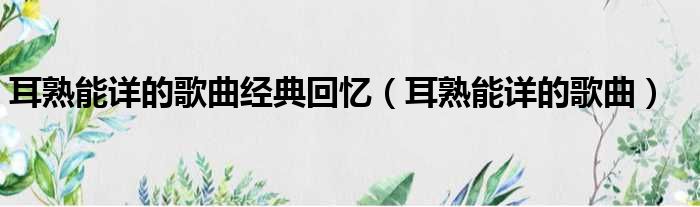 耳熟能详的歌曲经典回忆(耳熟能详的歌曲)