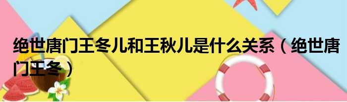 绝世唐门王冬儿和王秋儿是什么关系(绝世唐门王冬)