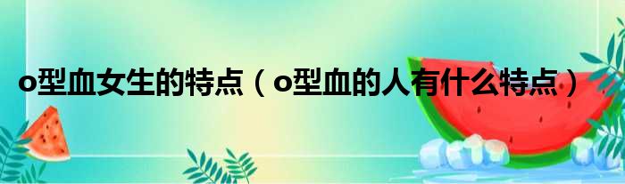 大家好,今天小六子来为大家解答以下的问题,关于o型血女生的特点,o型血的人有什么特点这个很多人还不知道,现在让我们一起来看看吧!