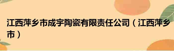 江西萍乡市成宇陶瓷有限责任公司(江西萍乡市)