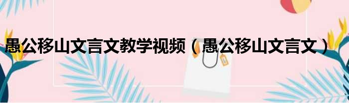大家好,今天小六子来为大家解答以下的问题,关于愚公移山文言文教学视频,愚公移山文言文这个很多人还不知道,现在让我们一起来看看吧!