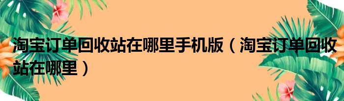 淘宝订单回收站在哪里手机版(淘宝订单回收站在哪里)