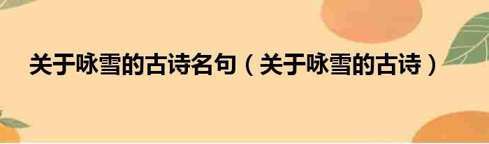 关于咏雪的古诗名句(关于咏雪的古诗)