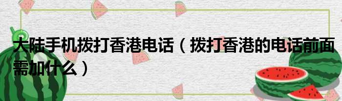 大陆手机拨打香港电话(拨打香港的电话前面需加什么)