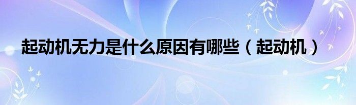 导读 大家好,今天小六子来为大家解答以下的问题,关于起动机无力是什么原因有哪些,起动机这个很多人还不知道,现在让我们一起来看看吧!1、起动