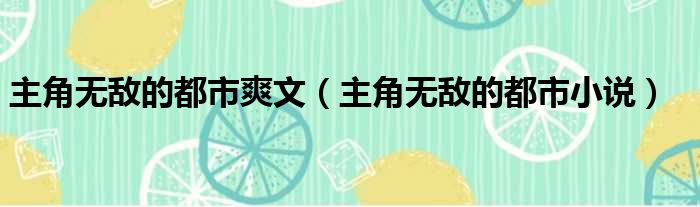 导读 大家好,今天小六子来为大家解答以下的问题,关于主角无敌的都市爽文,主角无敌的都市小说这个很多人还不知道,现在让我们一起来看看吧!1、
