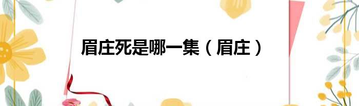 大家好,今天小六子来为大家解答以下的问题,关于眉庄死是哪一集,眉庄这个很多人还不知道,现在让我们一起来看看吧!
