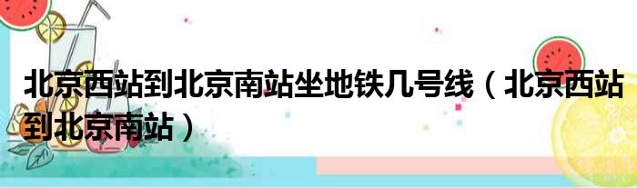 北京西站到北京南站坐地铁几号线(北京西站到北京南站)