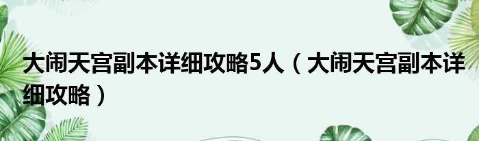 大家好,今天小六子来为大家解答以下的问题,关于大闹天宫副本详细攻略5人,大闹天宫副本详细攻略这个很多人还不知道,现在让我们一起来看看吧!