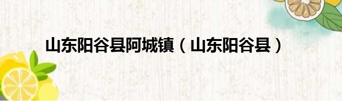 山东阳谷县阿城镇(山东阳谷县)