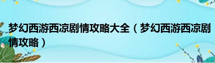 梦幻西游西凉剧情攻略大全(梦幻西游西凉剧情攻略)
