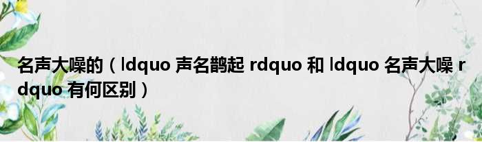 名声大噪的(ldquo 声名鹊起 rdquo 和 ldquo 名声大噪 rdquo 有何区别)