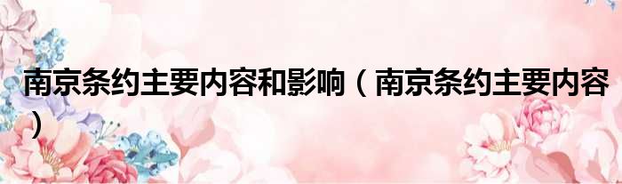 南京条约主要内容和影响(南京条约主要内容)