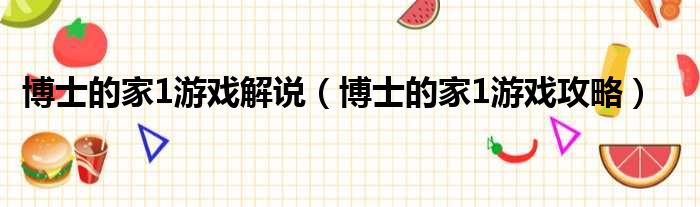 大家好,今天小六子来为大家解答以下的问题,关于博士的家1游戏解说,博士的家1游戏攻略这个很多人还不知道,现在让我们一起来看看吧!