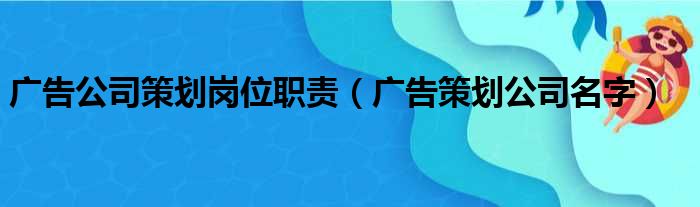 大家好,今天小六子来为大家解答以下的问题,关于广告公司策划岗位职责,广告策划公司名字这个很多人还不知道,现在让我们一起来看看吧!