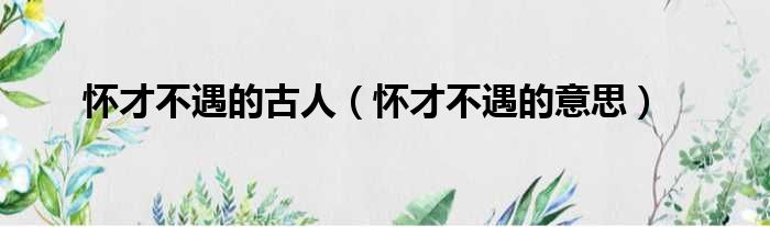 导读 大家好,今天小六子来为大家解答以下的问题,关于怀才不遇的古人,怀才不遇的意思这个很多人还不知道,现在让我们一起来看看吧!1、怀才不遇