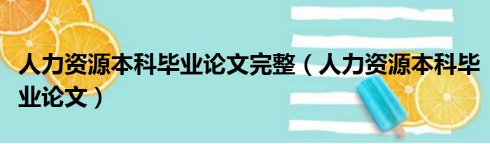人力资源本科毕业论文完整(人力资源本科毕业论文)