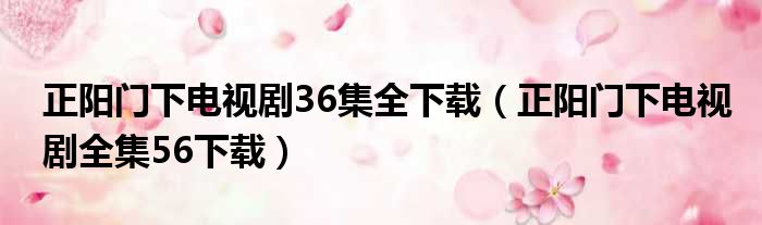 正阳门下电视剧36集全下载(正阳门下电视剧全集56下载)