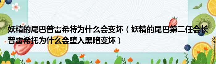 妖精的尾巴普雷希特为什么会变坏(妖精的尾巴第二任会长普雷希托为什么会堕入黑暗变坏)