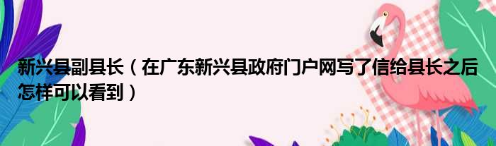 新兴县副县长(在广东新兴县政府门户网写了信给县长之后怎样可以看到)