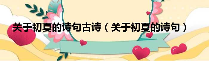 大家好,今天小六子来为大家解答以下的问题,关于关于初夏的诗句古诗,关于初夏的诗句这个很多人还不知道,现在让我们一起来看看吧!
