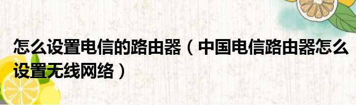 怎么设置电信的路由器(中国电信路由器怎么设置无线网络)