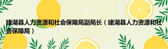 建湖县人力资源和社会保障局副局长(建湖县人力资源和社会保障局)