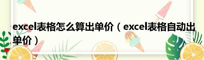 excel表格怎么算出单价(excel表格自动出单价)