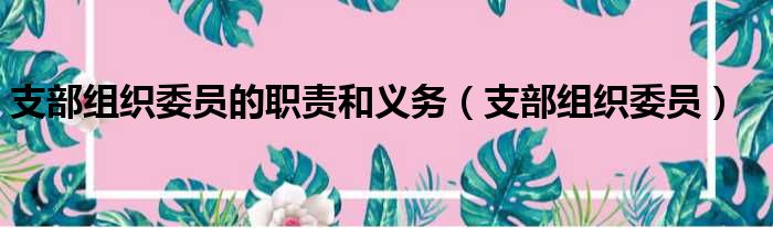大家好,今天小六子来为大家解答以下的问题,关于支部组织委员的职责和义务,支部组织委员这个很多人还不知道,现在让我们一起来看看吧!