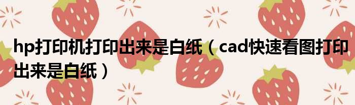 导读 大家好,今天小六子来为大家解答以下的问题,关于hp打印机打印出来是白纸,cad快速看图打印出来是白纸这个很多人还不知道,现在让我们一起来