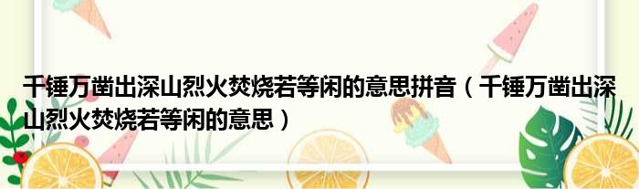 大家好,今天小六子来为大家解答以下的问题,关于千锤万凿出深山烈火焚烧若等闲的意思拼音,千锤万凿出深山烈火焚烧若等闲的意思这个很多人还不知道,现在让我们一起来看看吧!