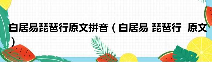 白居易琵琶行原文拼音(白居易 琵琶行 原文)