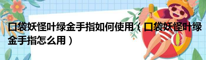 导读 大家好,今天小六子来为大家解答以下的问题,关于口袋妖怪叶绿金手指如何使用,口袋妖怪叶绿金手指怎么用这个很多人还不知道,现在让我们一