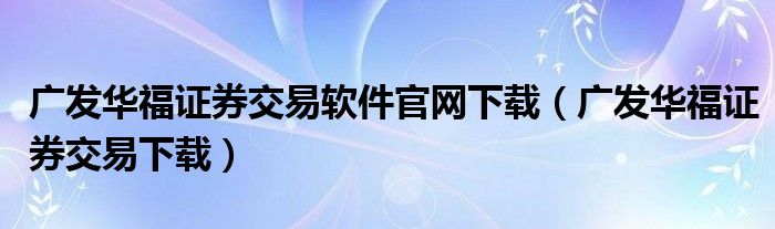 广发华福证券交易软件官网下载(广发华福证券交易下载)