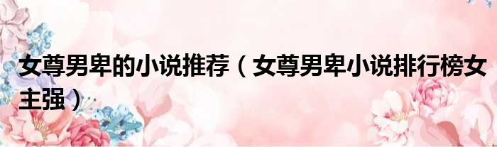 导读 大家好,今天小六子来为大家解答以下的问题,关于女尊男卑的小说推荐,女尊男卑小说排行榜女主强这个很多人还不知道,现在让我们一起来看看