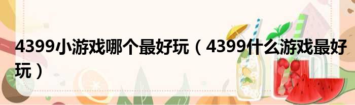 4399小游戏哪个最好玩(4399什么游戏最好玩)