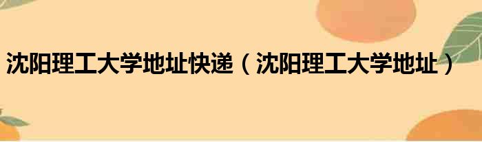 沈阳理工大学地址快递(沈阳理工大学地址)