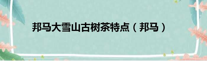 邦马大雪山古树茶特点(邦马)