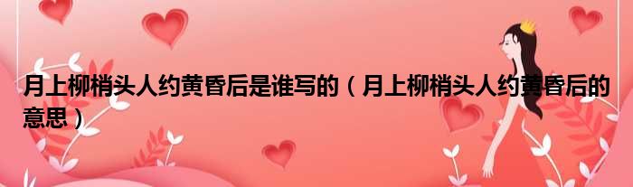 导读 大家好,今天小六子来为大家解答以下的问题,关于月上柳梢头人约黄昏后是谁写的,月上柳梢头人约黄昏后的意思这个很多人还不知道,现在让我