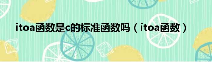 导读 大家好,今天小六子来为大家解答以下的问题,关于itoa函数是c的标准函数吗,itoa函数这个很多人还不知道,现在让我们一起来看看吧!1、itoa(
