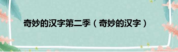 奇妙的汉字第二季(奇妙的汉字)