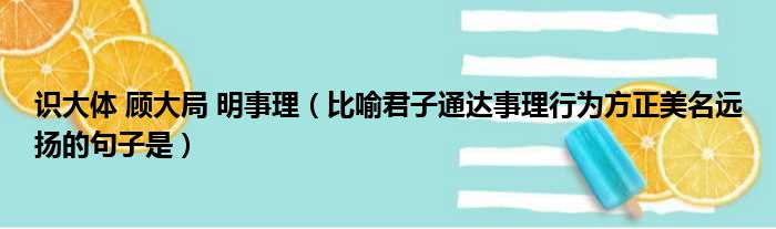 识大体 顾大局 明事理(比喻君子通达事理行为方正美名远扬的句子是)