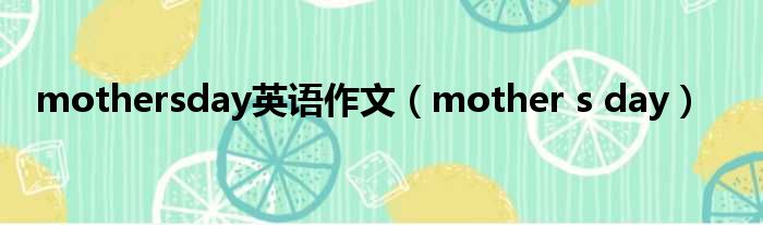 导读 大家好,今天小六子来为大家解答以下的问题,关于mothersday英语作文,mother s day这个很多人还不知道,现在让我们一起来看看吧!1、你的